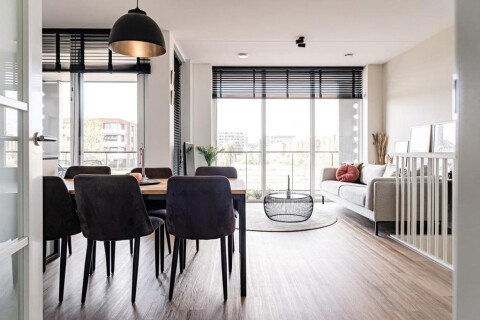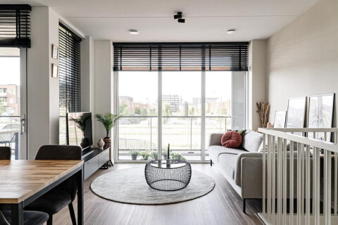 Met maar liefst drie slaapkamers is dit de ideale woning voor expats of mensen die graag een thuiskantoor willen combineren met een fijne woonomgeving. De ruime, lichte woonkamer is voorzien van hoge plafonds en grote raampartijen, wat zorgt voor een open en luchtige sfeer. Vanuit de woonkamer stap je via een schuifpui direct het balkon op het westen op – een heerlijke plek om te genieten van de avondzon. Aan de oostzijde van de woning bevindt zich nog een tweede balkon, zodat je op elk moment van de dag kunt kiezen voor zon of schaduw.