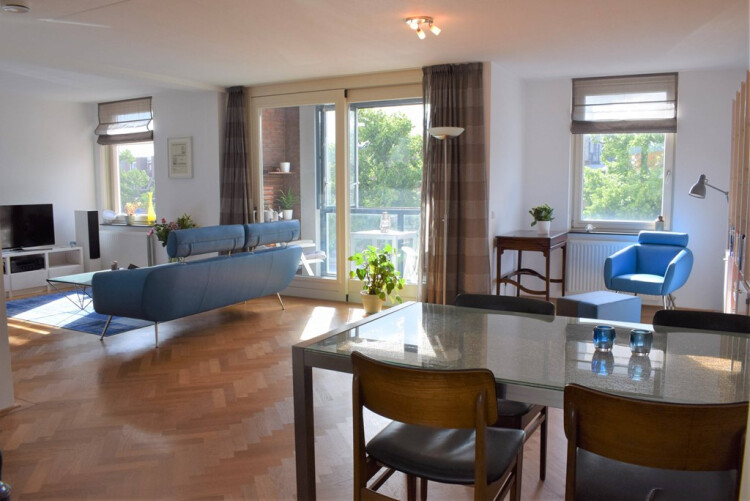 This spacious and modern, fully furnished, two bedroom apartment offers a private parking place and a view of the water of the Herensingel from one of the two balconies (both morning and evening sun). This small modern complex (built in 2004) is located within easy reach of the many public transport options in Haarlem (train, fast busses to Amsterdam and Schiphol) and just 5 minutes’ walk to the center of town and station. The property has been built and maintained to a high standard with wooden floors, fitted kitchen and luxury bathroom.