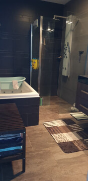 Luxury bathroom with walk-in shower and bath with jacuzzi.
