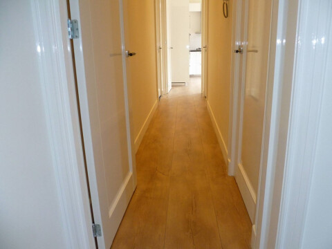 A long hall with first access from the beginning to the 2 bedrooms, and then the modern bathroom with shower and sink and separated in the back by a wall the connection for the washing machine and possibly. Dryer.