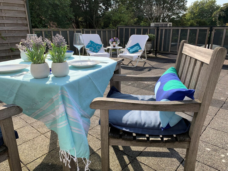 Living in a luxury apartment with spacious (40 m2) sunny roof terrace and 2 bedrooms, 5 minutes away from shopping street "de Cronje" and 1 minute from large Albert Heijn.