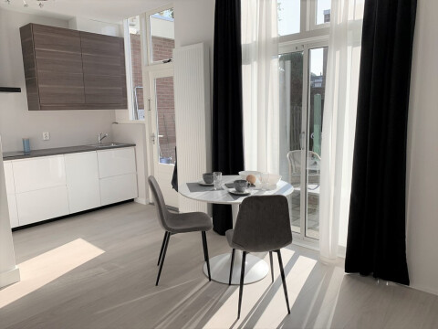 Completely renovated light and modern furnished ground floor apartment with 1 bedroom and a spacious sunny garden!