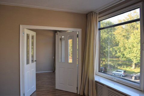 2e verdieping: ingang appartement, hal met toegang tot alle kamers. Ruime woonkamer (6.44 x 3.79) met grote ramen met uitzicht over het Schoterpark. Openslaande deuren van de woonkamer naar de 2e slaapkamer/werkkamer (3.70 x 2.80). Master bedroom (4.14 x 3.79) met kastenen toegang tot het balkon. Keuken met grote koel/vriescombinatie, gaskookplaat, vaatwasser en veel bergruimte. Deur naar het balkon, gelegen op het zuiden. Moderne badkamer met inloop douche, wastafel en toilet. Aansluiting voor een wasmachine en droger in de badkamer. Er zijn meerdere parkeerplekken op de gemeenschappelijke parkeerplaats (geen vaste plek) en parkeerplekken op straat (parkeervergunning).