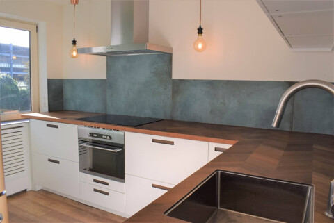 - Twee slaapkamers (of 1 slaapkamer en een werkkamer) met moderne keuken en badkamer;