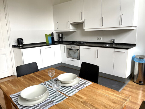 The apartment is conveniently located, almost opposite the train station and the bus stations and within walking distance of the shops (Cronje) and Kleverpark and the historic center!