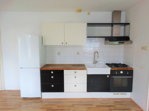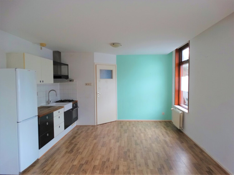 Indeling; Hal met toegang tot het appartement. De sfeervolle en lichte woonkamer beschikt over een open keuken welke voorzien is van koelkast, vriezer, gasfornuis en oven. Een ruime slaapkamer. Badkamer voorzien van een douche, bad, wastafel en toilet. Onder de woning is nog een zeer ruime kelder beschikbaar.
