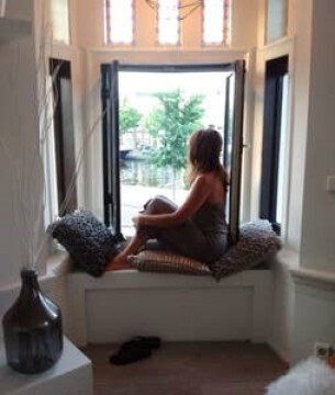 De erker met zitje is een heerlijke plek om ’s avonds nog even te genieten van het prachtige uitzicht.
