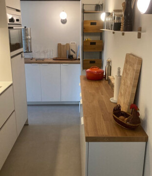 Volledig keuken (vaatwasser, koelkast met vriesvak, inductie kookplaat, combi-oven) en badkamer (uit 2022), alle muren zijn behang klaar en geschilderd;