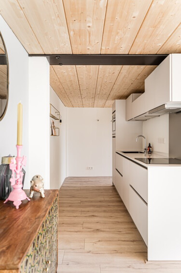 Indeling: entree. Slaapkamer. Ruime woonkamer met complete keuken (met inductiekookplaat, vaatwasser, combi-oven, koelkast met vriesvak en afzuigkap), Toilet. Berging met aansluiting wasmachine en droger. Badkamer met toilet, wastafel en douche. Slaapkamer met toegang tot balkon.