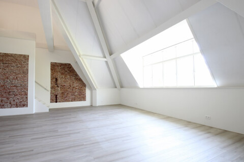 Slaapverdieping: vide met zicht op de woonkamer. Inpandige berging, badkamer met ruime wastafel en inloopdouche. Gang die toegang geeft tot 2 slaapkamers en de master bedroom, met ook hier weer balken in het zicht. Zowel vanuit de gang als iedere slaapkamer is er toegang tot één van de twee dakterrassen met uitzicht over Haarlem, zodat u 's morgen op het ene terras van uw kopje koffie kunt genieten en 's avonds kunt dineren op het andere terras.