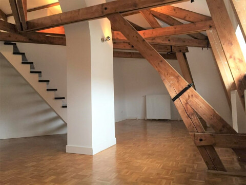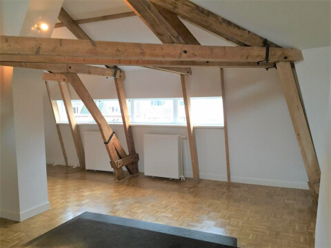 2e etage: entree, hal, een prachtige ruime woonkamer met mooie hoge plafonds en houten balken. Middels een vaste trap is de zeer ruime loft te bereiken waar perfect een mooie werk plek gecreëerd kan worden. Een open keuken welke van alle gemakken is voorzien. Separaat toilet. Er zijn twee ruime slaapkamers. Badkamer voorzien van dubbele wastafel en inloopdouche. De woning is voorzien van een nette houten vloer.