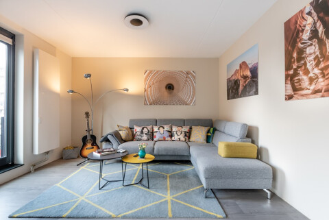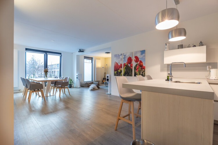 This spacious and well designed (airconditioned) apartment with two spacious bedrooms is available to let fully furnished. The property offers a parking place and storage room in the underground garage and a large terrace. In addition to the personal terrace, the communal terrace is just across from the property which ensures sunshine at any time of the day. This apartment has been stylishly decorated and furnished offering a PVC (wood effect) floor providing optimal insulation, a split air condition system (heating and cooling for the entire apartment) two areas for breakfast/dining and a spacious sitting area plus two good sized bedrooms. Marsmanplein is a bustling square with covered shops an amenities plus a couple of restaurants. Next to the parking garage with designated parking spot for this apartment, there is a free parking garage (with two 11kw EV chargers) for the shopping area and free parking including extra EV chargers around the neighbourhood. An easy walk/bus or bike ride to Haarlem station ensures an easy commute to Amsterdam, Leiden, Den Haag or Rotterdam.