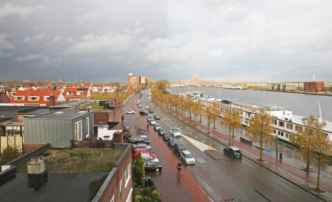 Slaapkamer aangrenzend aan balkon met een geweldig uitzicht over het Spaarne.