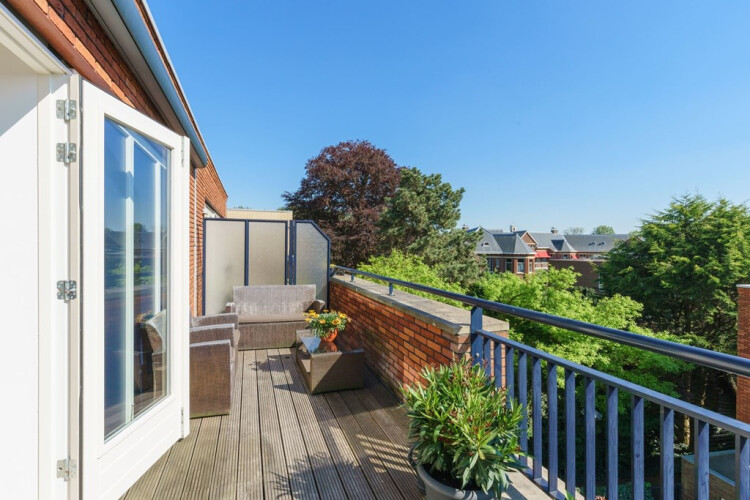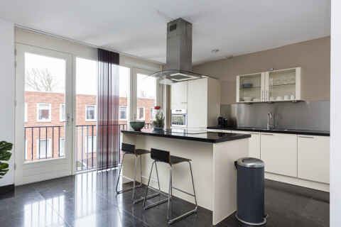 On the ground floor the entrance with a special staircase party. A lot of light falls on immediately and is a nice feature for the rest of the house. On the 1st floor a spacious hall with a beautiful floor of Belgian bluestone and spacious wardrobe. Adjacent a modern toilet and passage to the spacious living room. Also in the spacious living room a beautiful stone floor and lots of light through the high windows. Adjacent the open kitchen with cooking island, and v.v. various appliances such as dishwasher oven etc. During cooking is cozy sitting at the bar and can open the doors to the French balconies in summer.